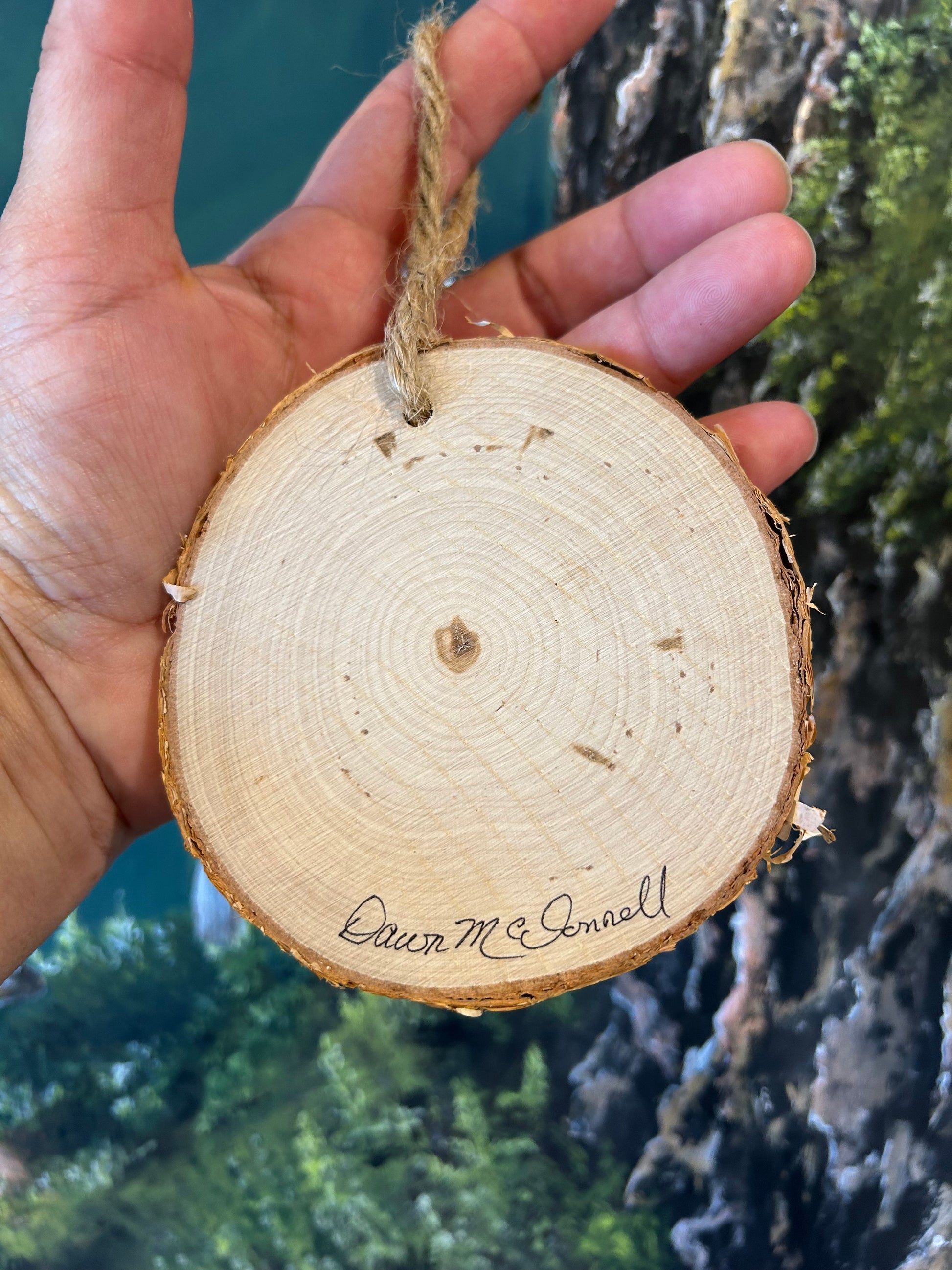 Sealed with a gloss glaze and a twine string for hanging