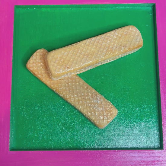 These 3D food art pieces are crafted from clay and meticulously hand-sculpted to replicate realistic food items. Painted details enhance the realism, and added embellishments are the perfect touch. Once placed on the carefully chosen, color-combo-painted frame, it becomes the most fun and exciting piece of art there is!